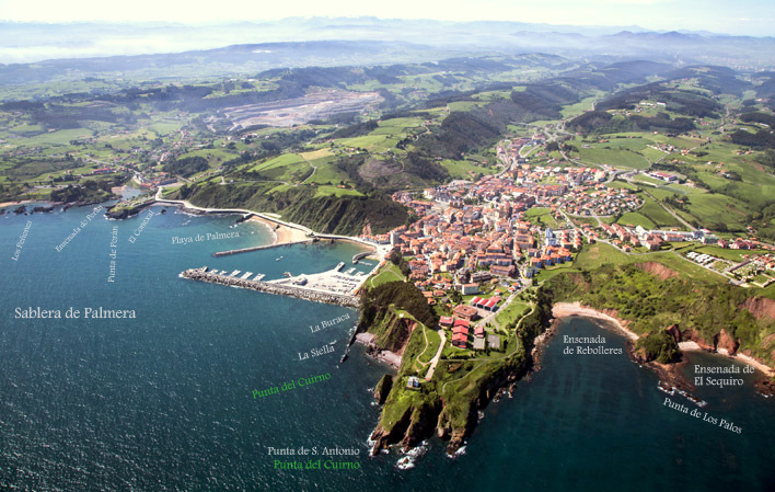 Entre el promontorio de San Antonio y otro promontorio de mayor altura y de igual color llamado de San Sebastián (o monte Fuxa), a unos 400 metros de distancia, se forma una quebrada abarrancada que se interna al W y por la que corre el río Rita. Ambos promontorios alojan un anfiteatro en el que se ubica la villa de Candás donde se encuentra un puerto que alberga diferentes tipos de embarcaciones pesqueras y deportivas. Acceder a su puerto es difícil y peligroso con mar gruesa, pues todas sus cercanías están plagadas de bajos de piedra, que producen grandes rompientes con bagas de mar y hacen muy difícil la entrada en esta ensenada. Más adelante se realizará una descripción de las mismas.