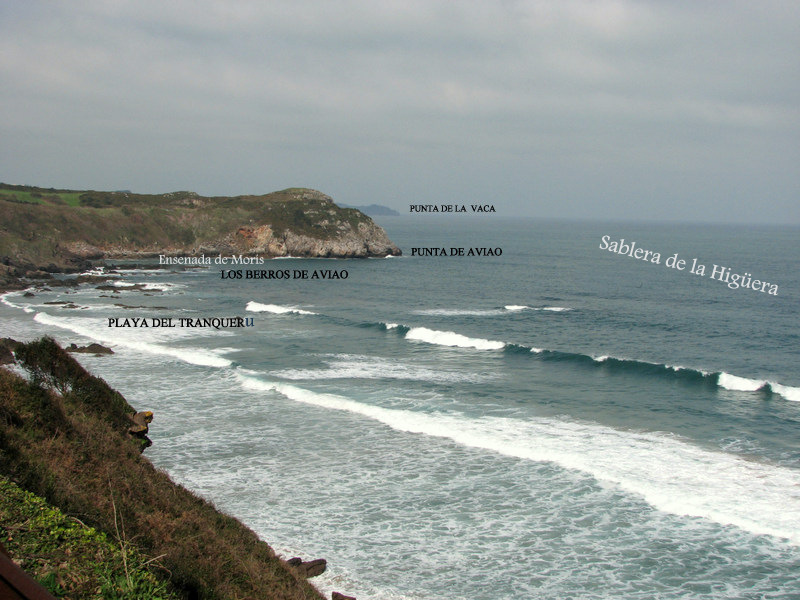 Desde la punta de Perán la costa gana al E hasta la de Socampo, que es baja y pedregosa sigue a esta las de Entrellusa y Aviao,igualmente escabrosas y cercadas de piedras. Las puntas Aviao y Entrellusa delimitan una pequeña ensenada con una pequeña playa que, en su momento fue un puerto ballenero. Su fondo es de piedra y en ella asoman algunos peñascos siempre visibles y otros que asoman en bajamar. Al SE de la punta Entrellusa se encuentra un islote, que toma su nombre.