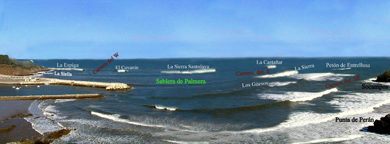 No debe entenderse que con lo dicho quedan descritos todos los peligros que con mar gruesa presenta este trozo de costa. La abundancia de los fondos de piedras y las desigualdades que se notan, son causa de que la mar arbole y a veces rompa; tal sucede, por ejemplo, en la llamada Piedra Perico, situada a una milla al N de la punta Socampos y cubierta con 9 metros de agua. La punta Palos, situada a 400 metros al W de la punta El Cuirno, despide un arrecife que descubre en bajamar y que se aleja hasta 350 metros en dirección NE; más al N, a unos 130 metros de la costa y a 700 m del faro de Candás se encuentra la piedra de San Antonio, con 0,7 metros de sonda entre fondos algo mayores.